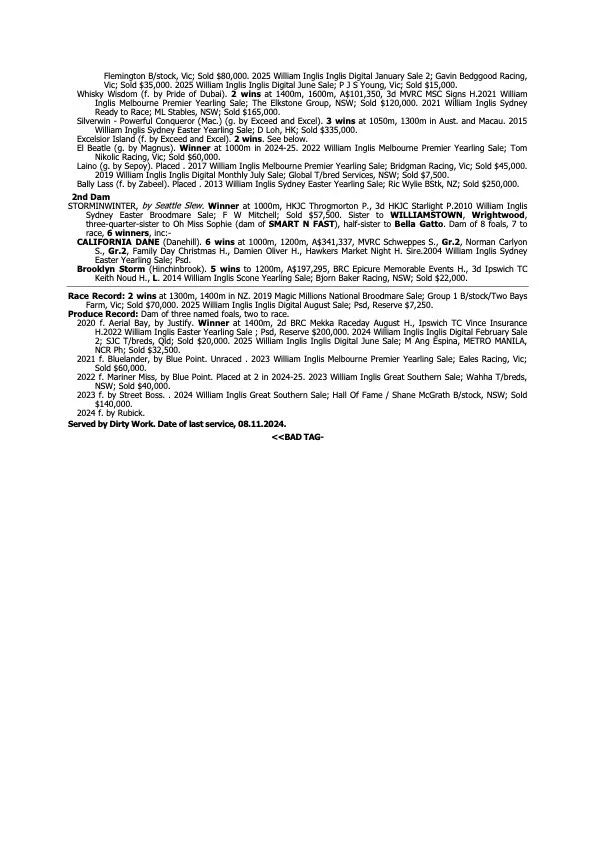 Excelsior island (Exceed and Excel) is a ½ sister to WARHORSE, a champion 2YO in NZ over 1200m - 1400m winning the Gr.1 ARC Diamond Stakes and the Gr.1 Manawatu Sires Produce Stakes.